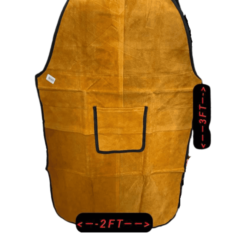 Heavy-duty leather apron designed to protect the torso from sparks, heat, and molten splatter during welding and grinding operations.