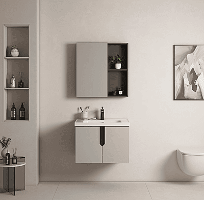 BLACK & CREAM ALUMINIUM BATHROOM VANITY WITH CABINET & MIRROR SMALL 1