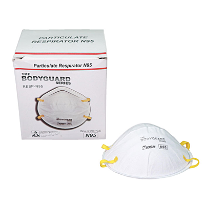 Bodyguard N95 Disposable Particulate Respirator. Exhalation valve for easy breathing and increased worker comfort.