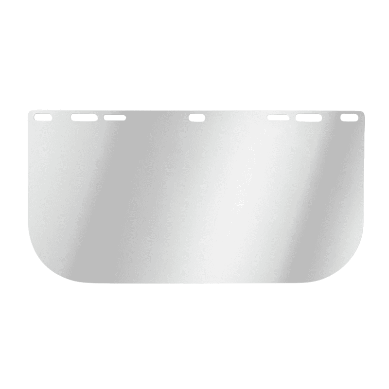 Replacement clear plastic lens compatible with standard face shield headgear. Provides impact and splash protection.