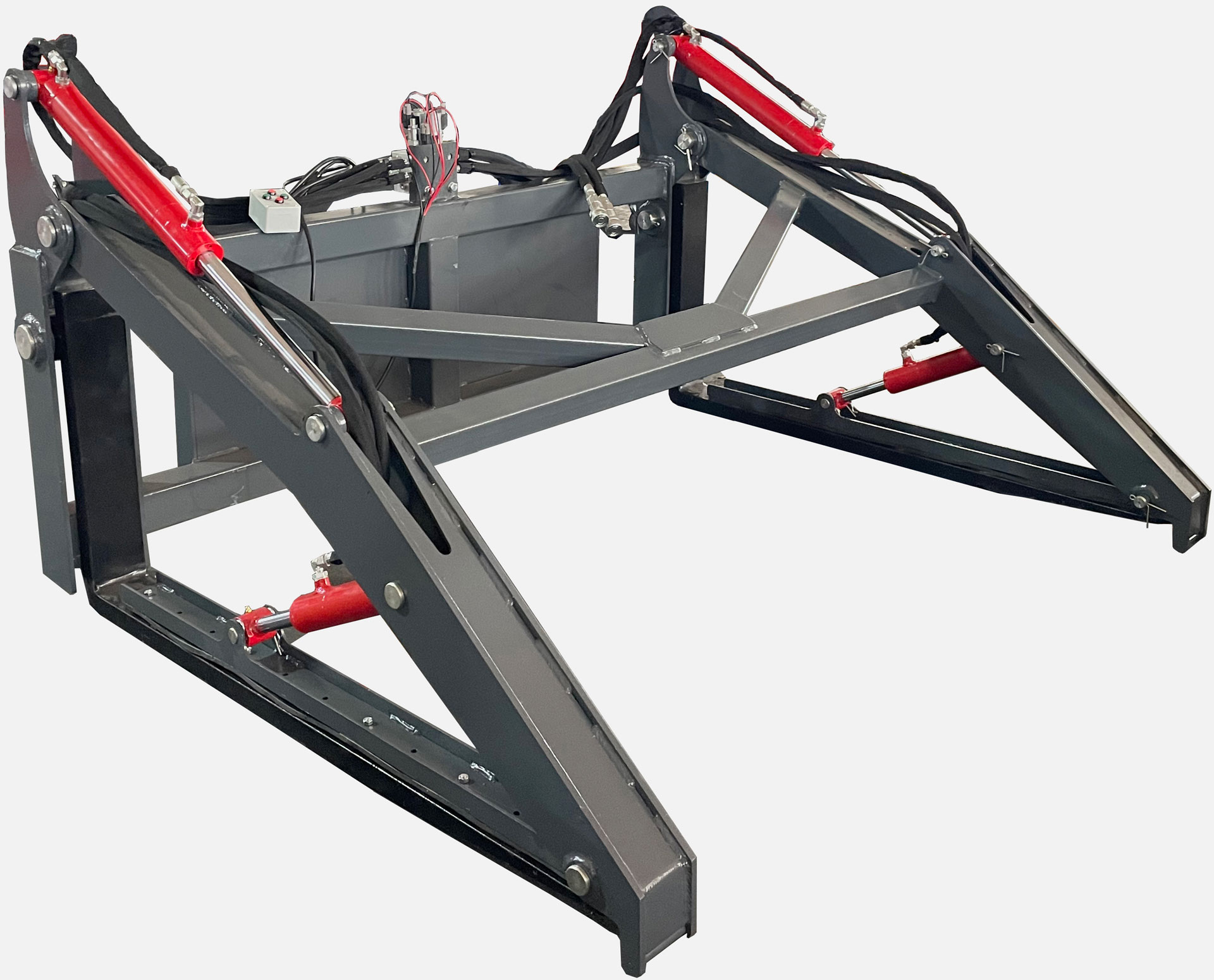 "4400LBS CAPACITY 48"" LONG FORK TWIN STABILIZER CLAMP OVERALL SIZE: L70.5"" X W59"" X H39"" MAX OPENING DISTANCE 70"" REQUIRES ONLY 9GPM HYDRAULIC FLOW"