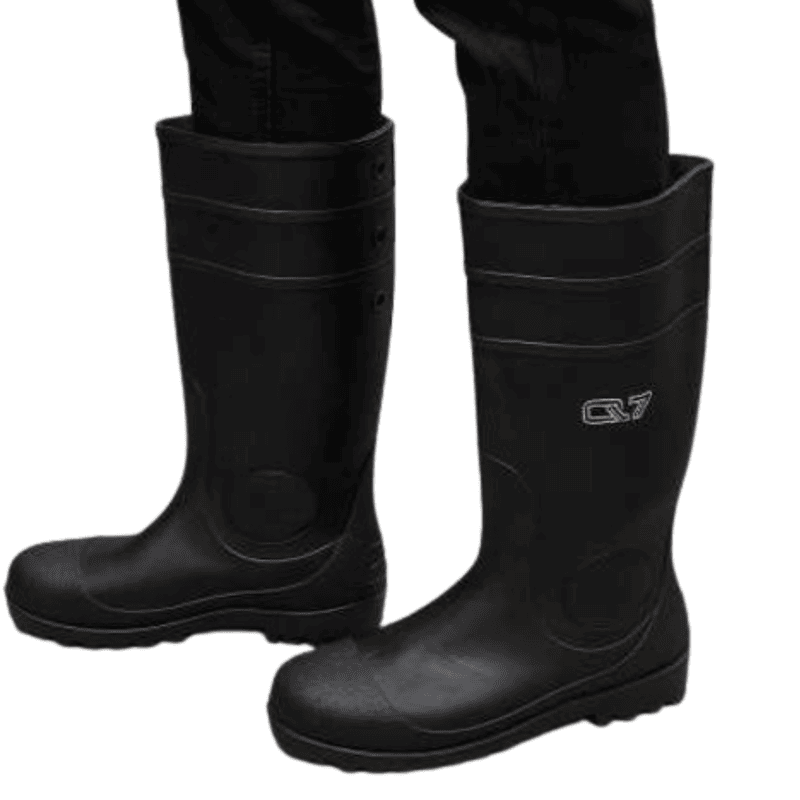 Heavy-duty rubber safety boots with steel toe protection. Designed for wet, muddy, and industrial environments.