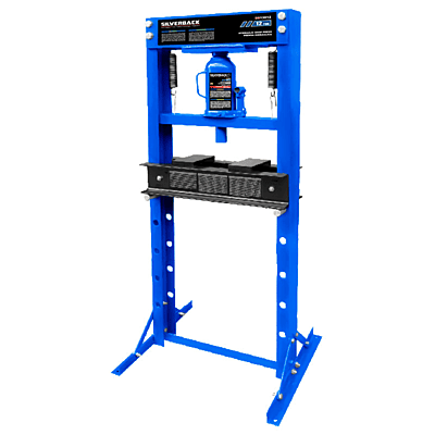This 20-ton H-frame work shop press can be used for electric motor and armature repair, installation and removal of pressure-fitted parts, and bending or straightening metal. For car restoration specialists or automotive enthusiasts, this shop press helps remove and install bearings, gears, U-joints, bushings, ball joints, and pulleys!