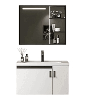 Are you looking for bathroom furniture that is elegant, modern and durable? Aluminum is the perfect choice for you! This high-quality material is known for its corrosion resistance, meaning your bathroom cabinet will look pristine for many years. Plus, aluminum is lightweight and easy to clean, making it a practical choice for your bathroom. Characteristics: Material: Aluminum Includes Porcelain Furniture Size: 81 x 47 x 47 cm Mirror Size: 75 x 11 x 63cm White color Not included: Faucet