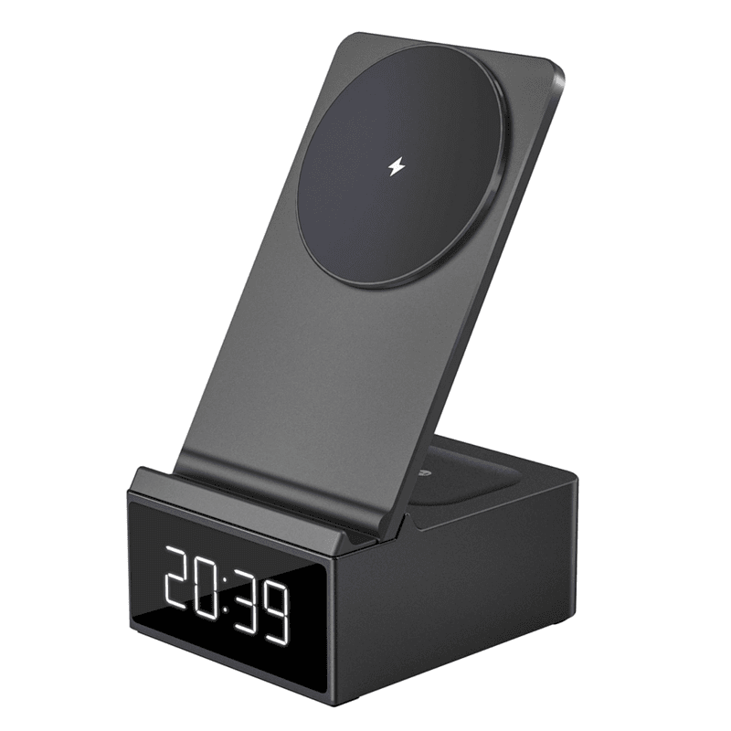 "Material: aluminum alloy+ acrylic 3 in 1 wireless charger, With clock Phone: 15W, Airpods 5W, USB output 5W Net weight: 340g"